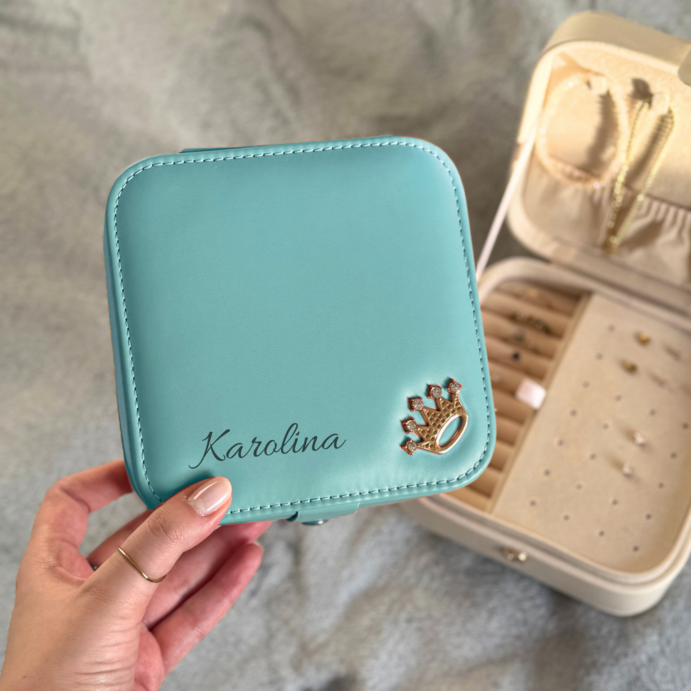 Możesz spersonalizować swoje etui na biżuterię dodając imię, inicjał lub krótki napis. Dzięki temu organizer zyska indywidualny charakter i stanie się świetnym, przemyślanym prezentem. To drobny detal, który sprawia, że szkatułka nie jest już tylko praktycznym dodatkiem – staje się Twoja.
