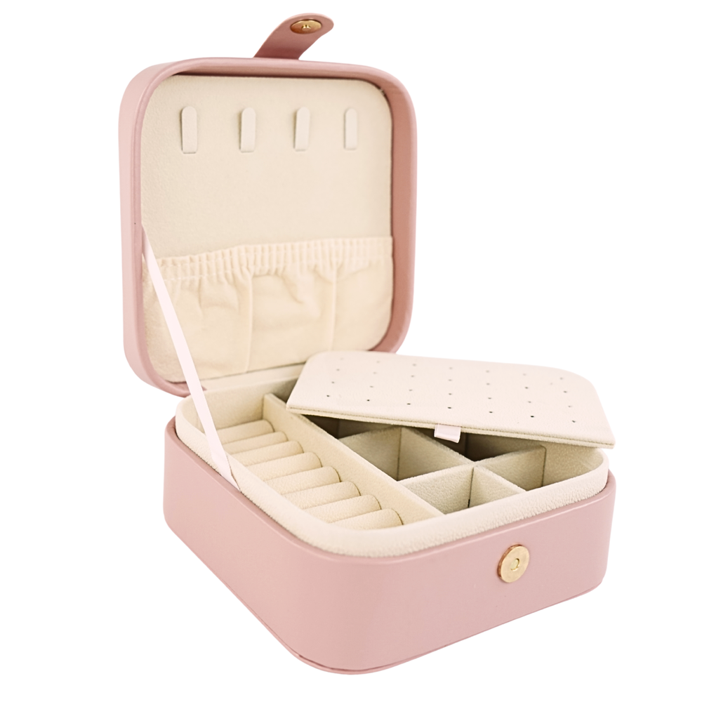 Etui zamykane jest na zatrzask – łatwo je otworzysz jedną ręką, a biżuteria pozostaje bezpieczna nawet w podróży. To praktyczne rozwiązanie, które pozwala spakować wszystko w kilka chwil.