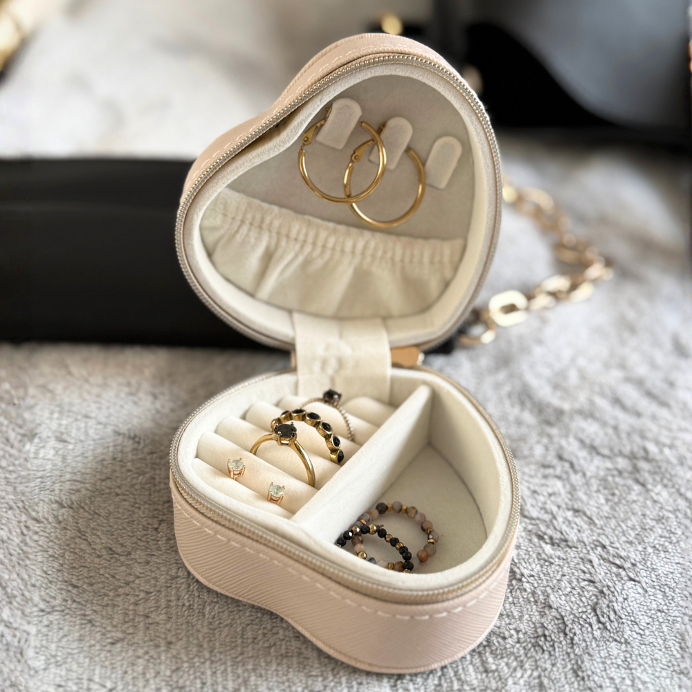 Personalizowana szkatułka na biżuterię w kształcie serca - jasny beż
