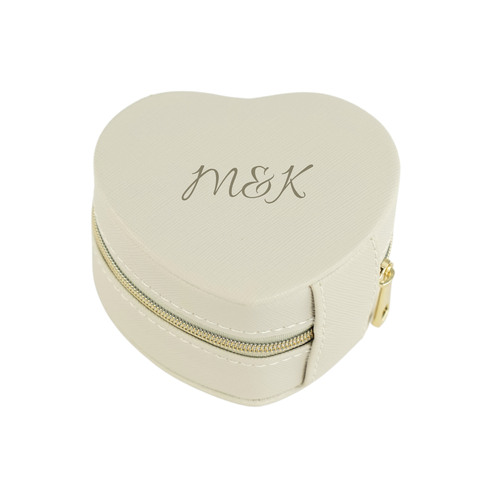 Personalizowana szkatułka na biżuterię w kształcie serca - ciemny beż