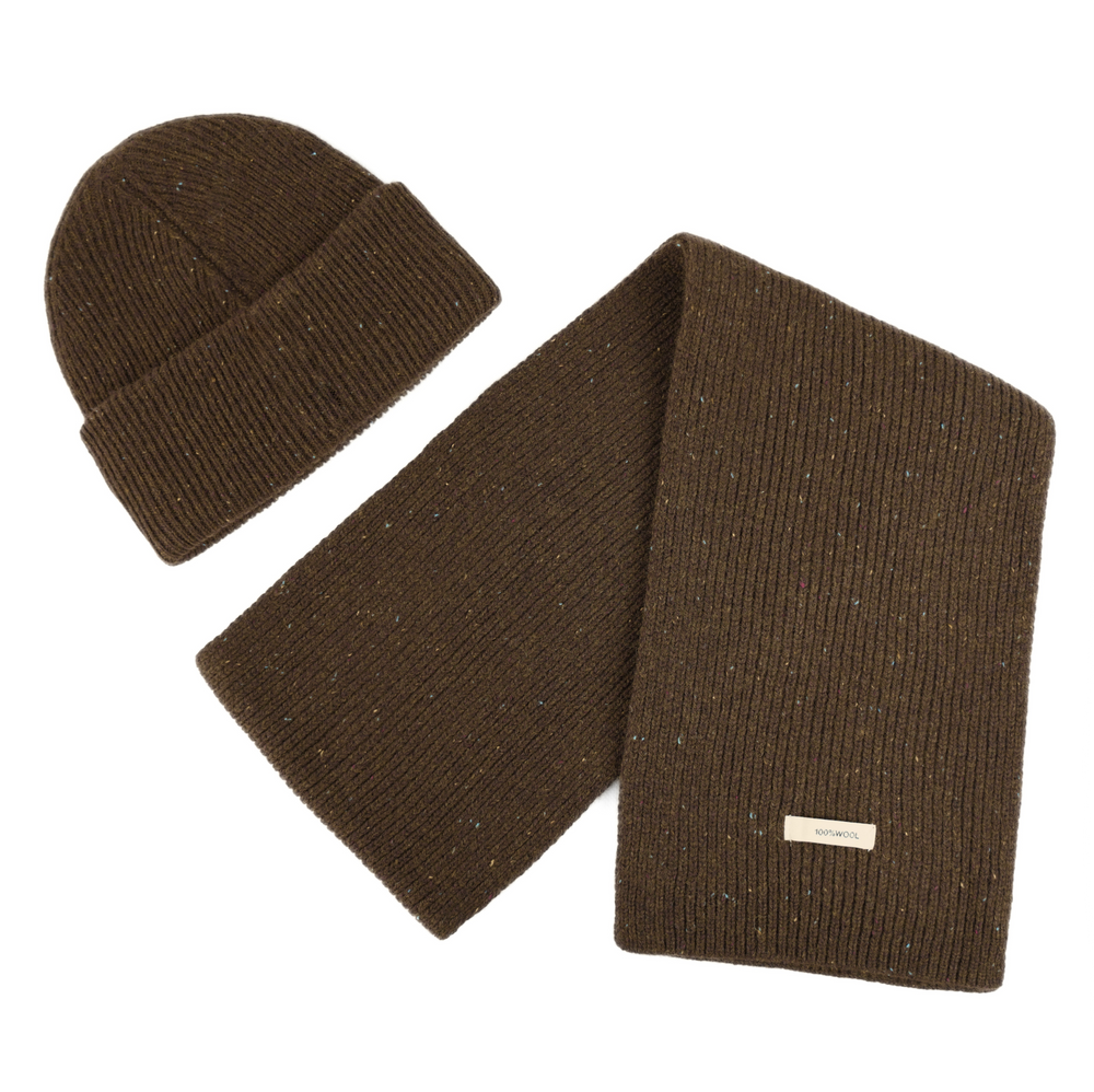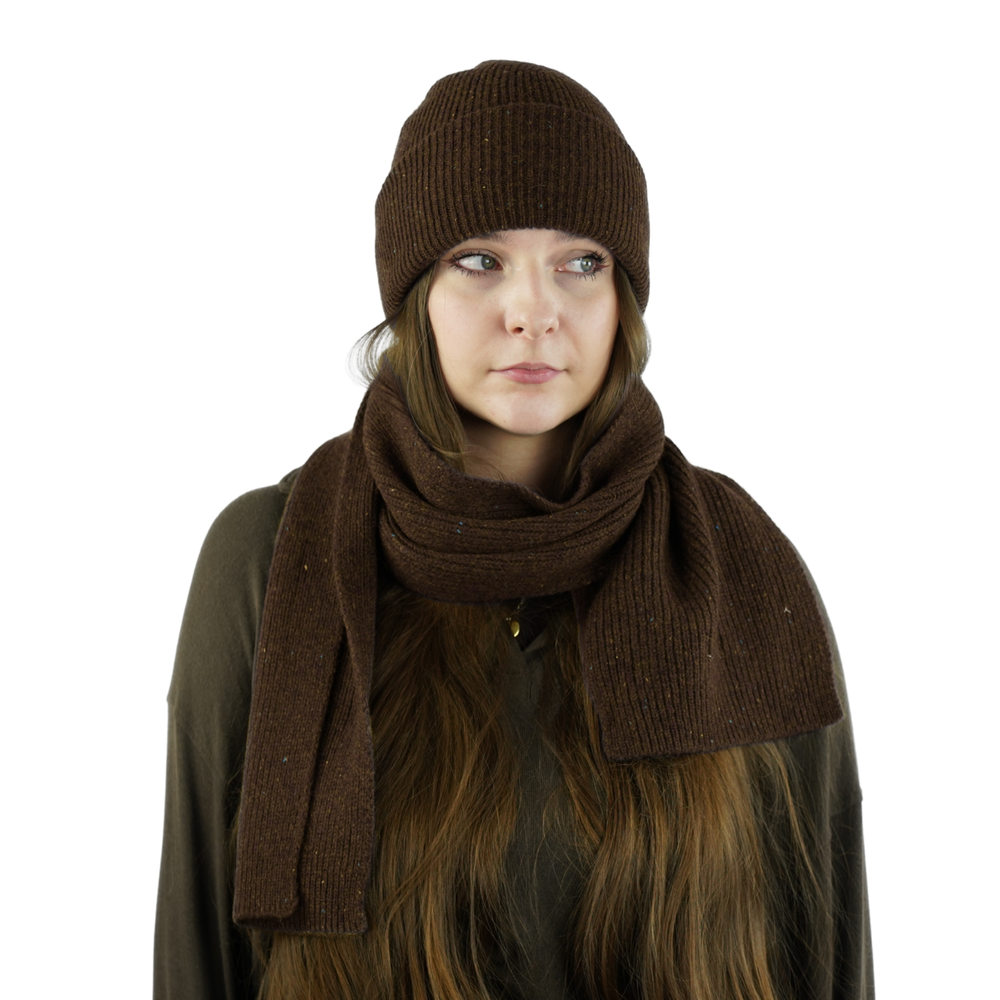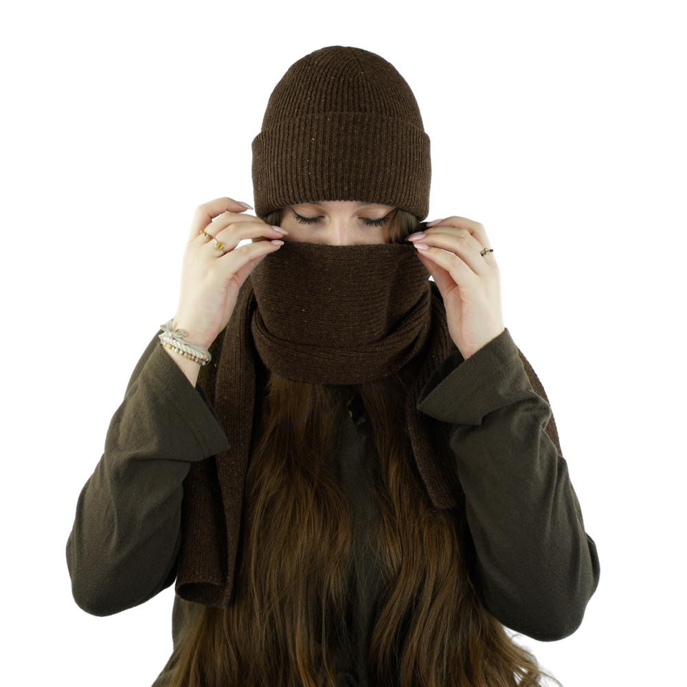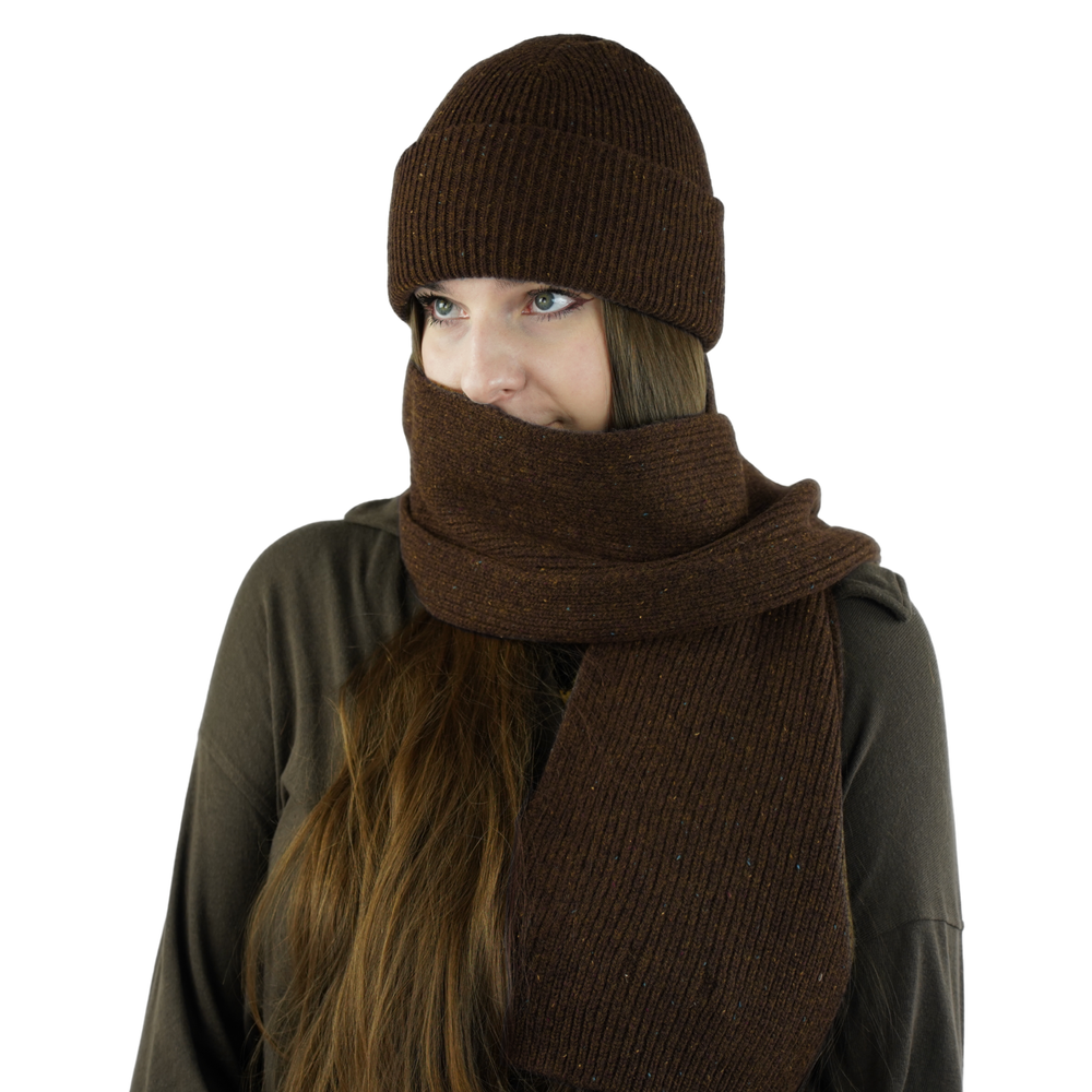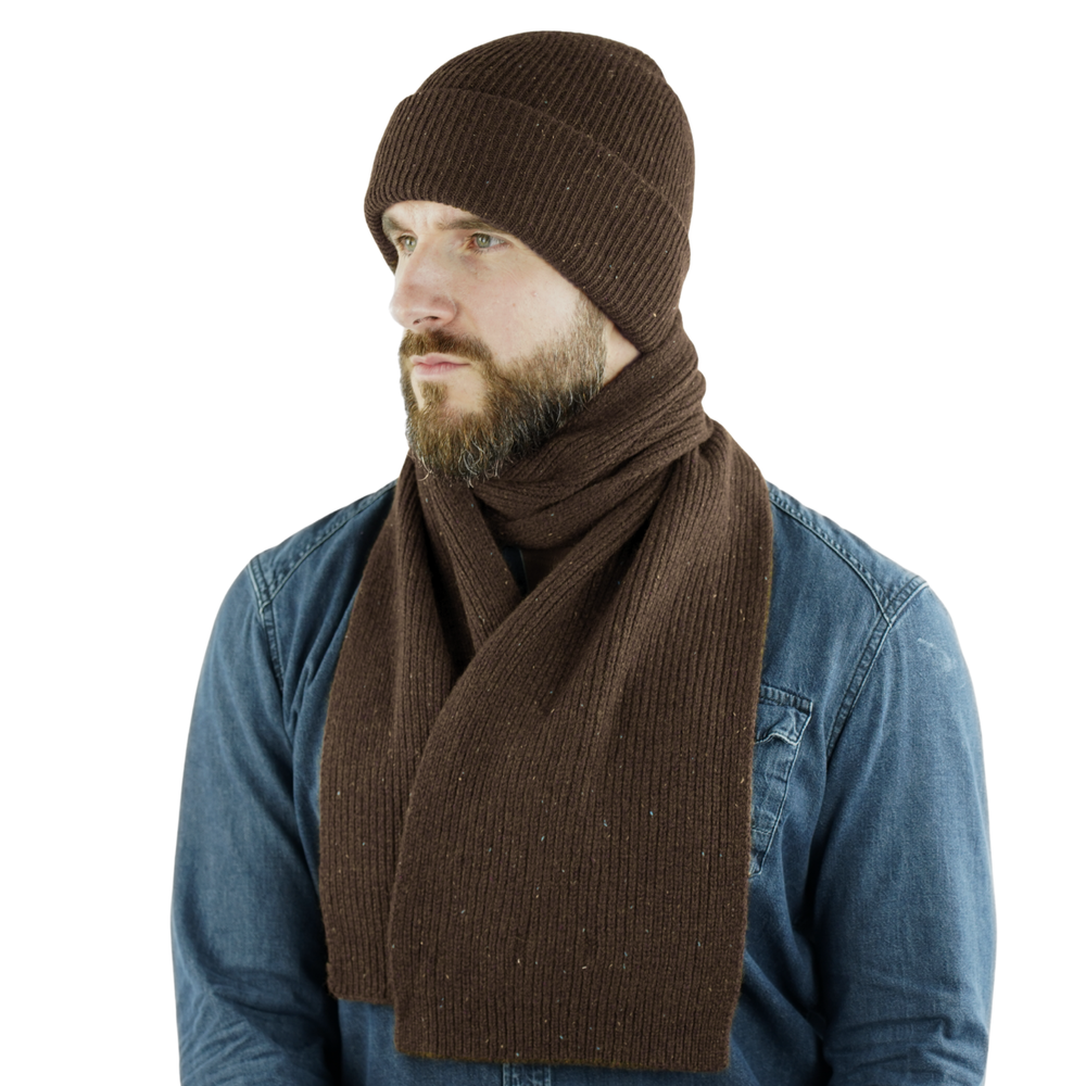Ciepły wełniany szalik 100% wełny NORDIS ciemny brąz