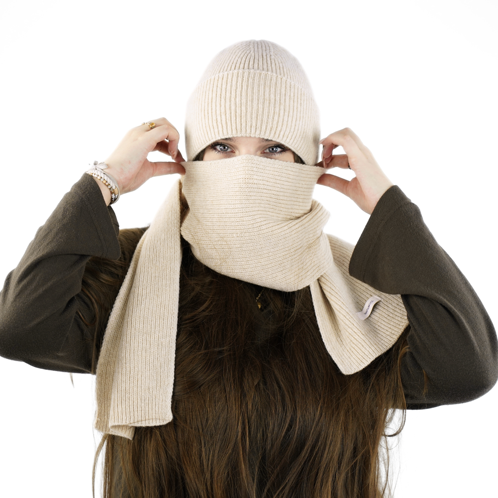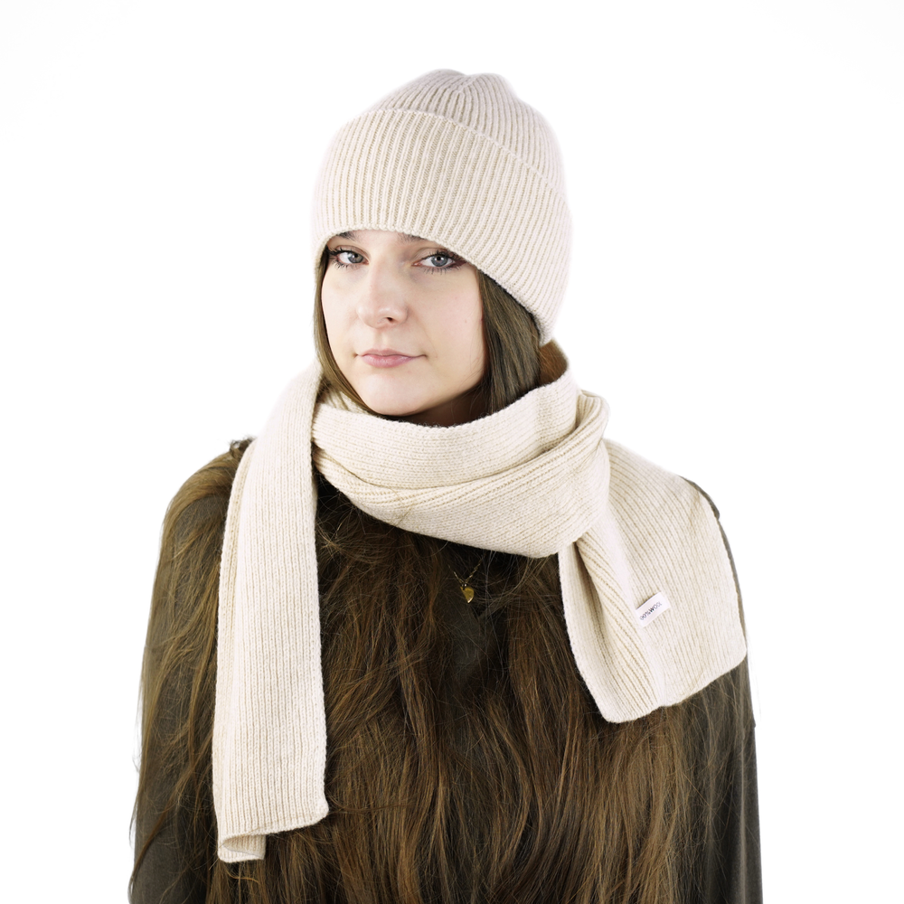 Ciepła wełniana czapka 100% wełny FJORD jasny beż