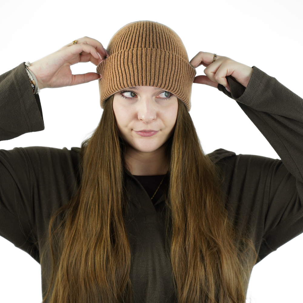 Wełniana czapka 100% wełny MERIN - jasny brąz