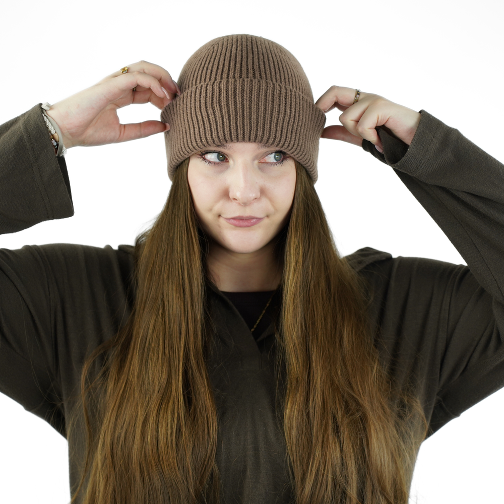 Wełniana czapka 100% wełny MERIN - ciemny brąz