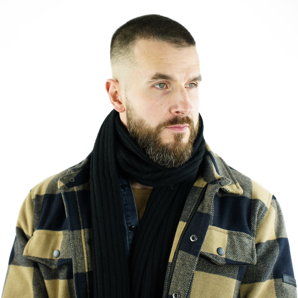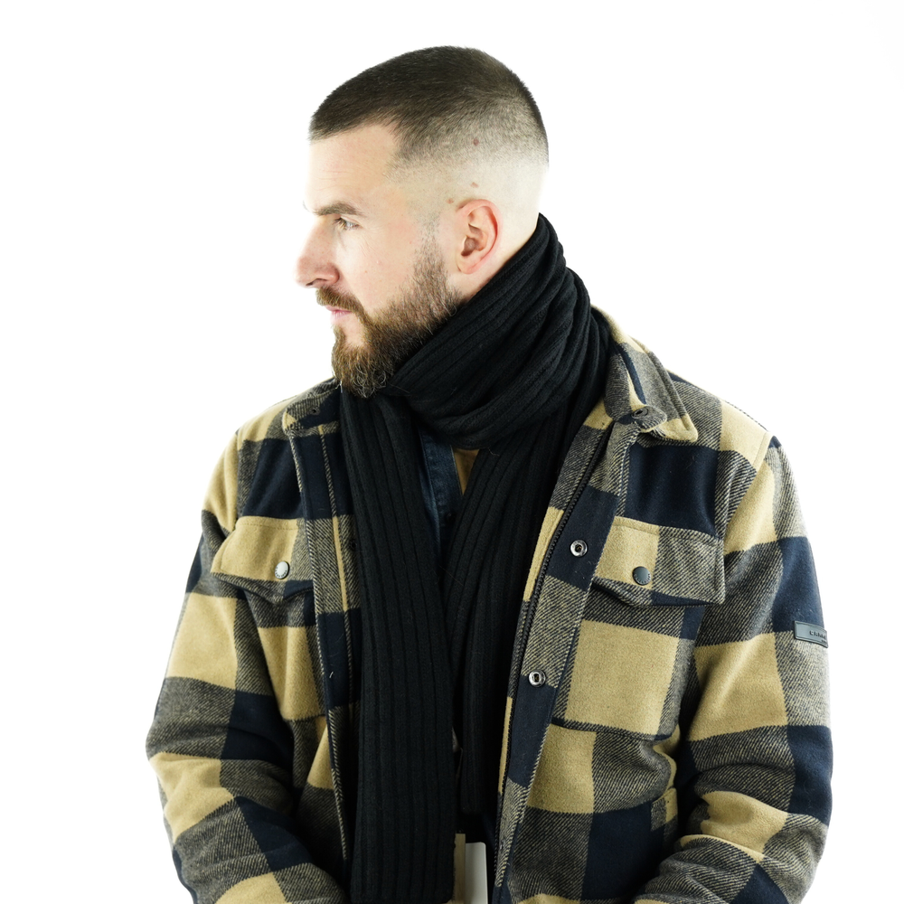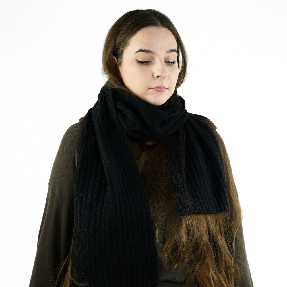 Wełniany ciepły szalik 100% wełny MERIN czarny